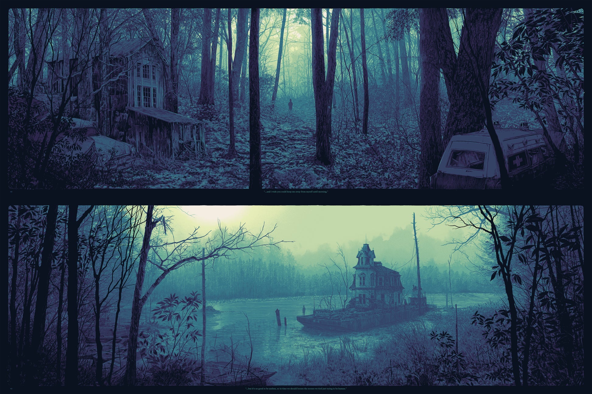 this is a PAIR of 12x36" 11 color screenprints with metallic overprint.