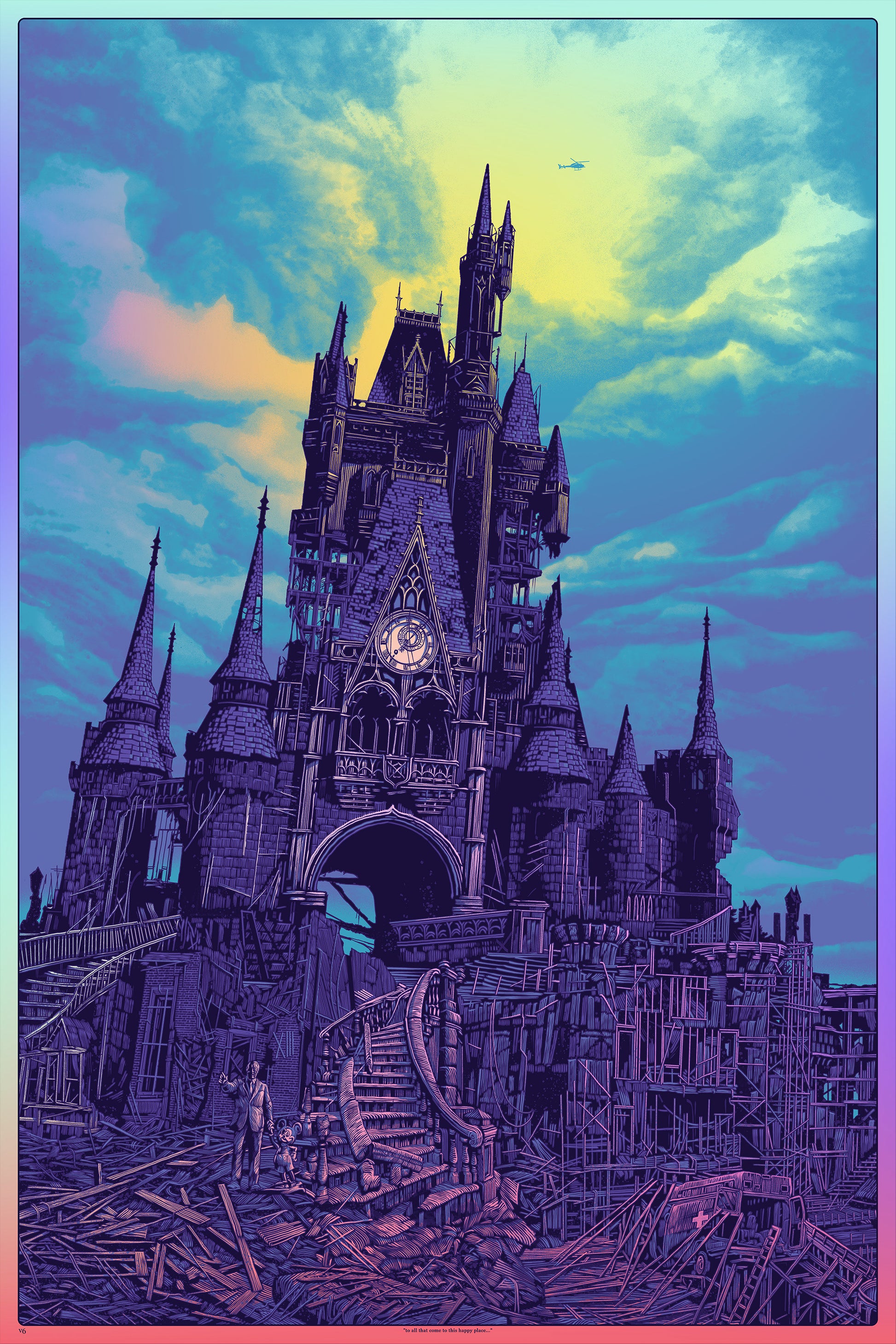 24x36" 5 color screenprint on rainbow foil paper