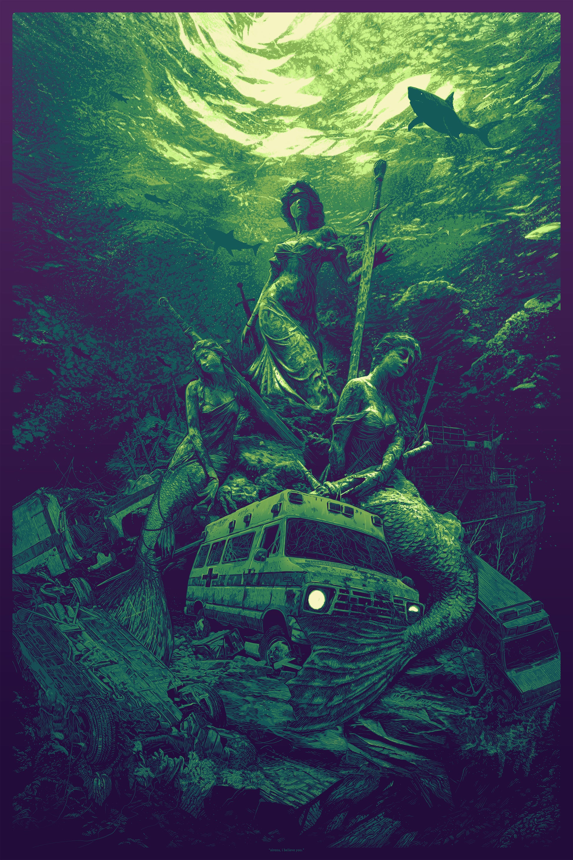 24x36" 7 color art print with two color split fountain keyline layer and metallic accenting.