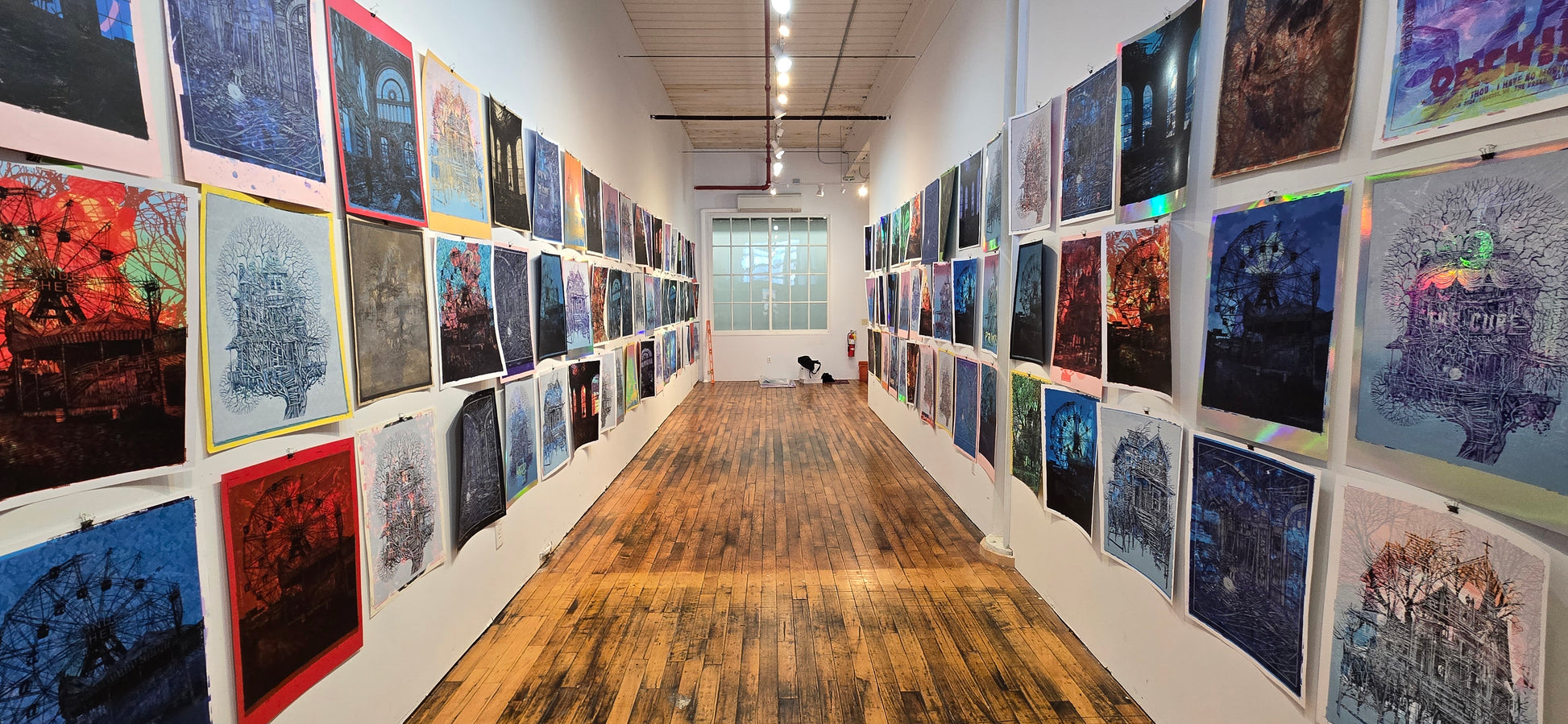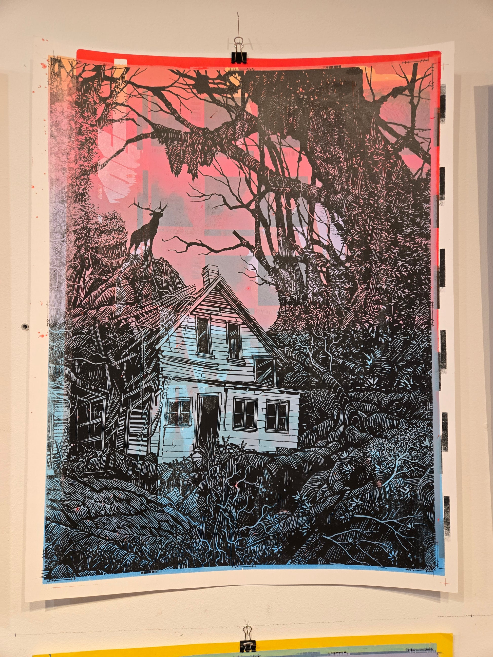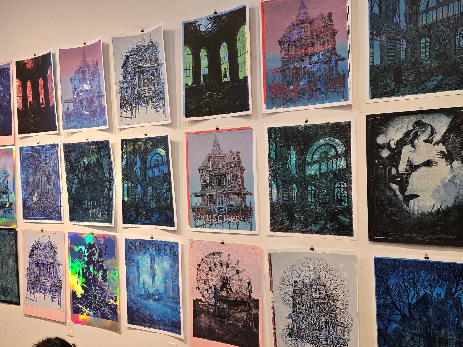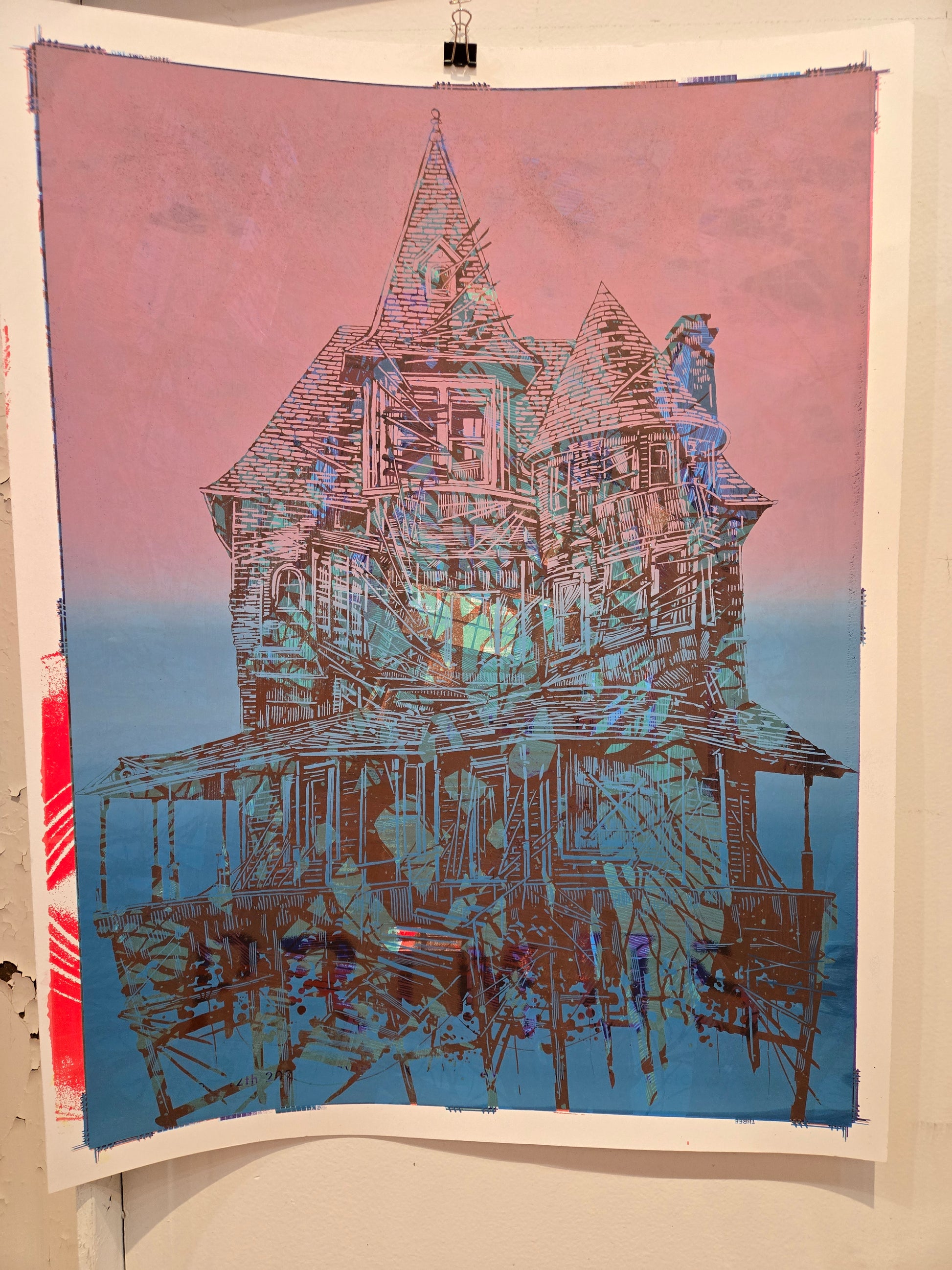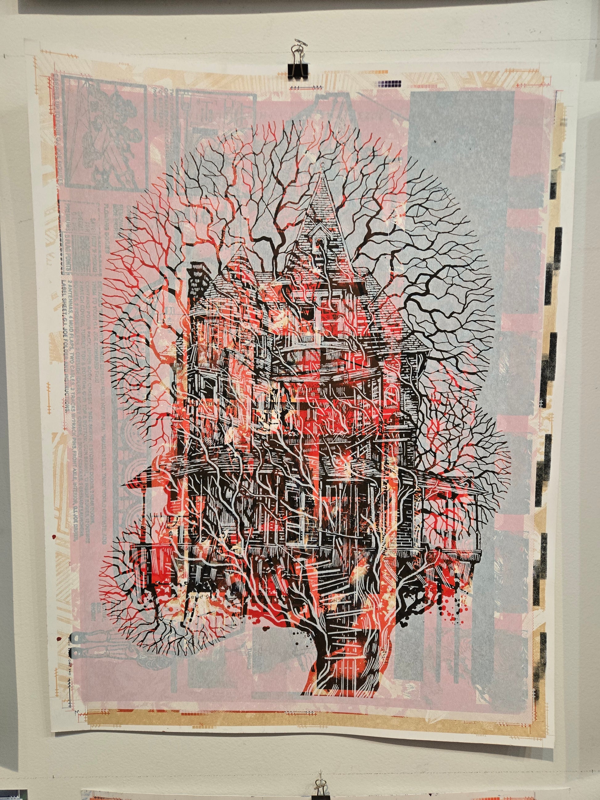 three test prints from the shop with additional ? approximately ? sized with approximately ? ink colors and ? imagery, for a total of maximum ?